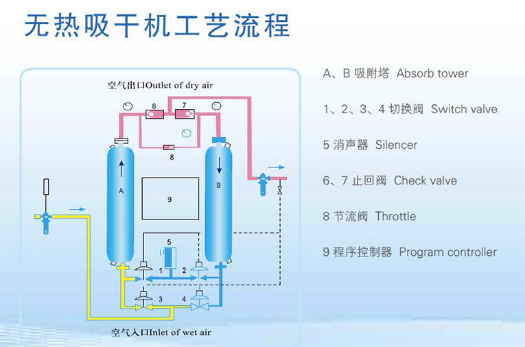 A、合理的筒体设计,保证了压缩空气与干燥剂的接触时间为4.8秒,满足成品气的露点要求。