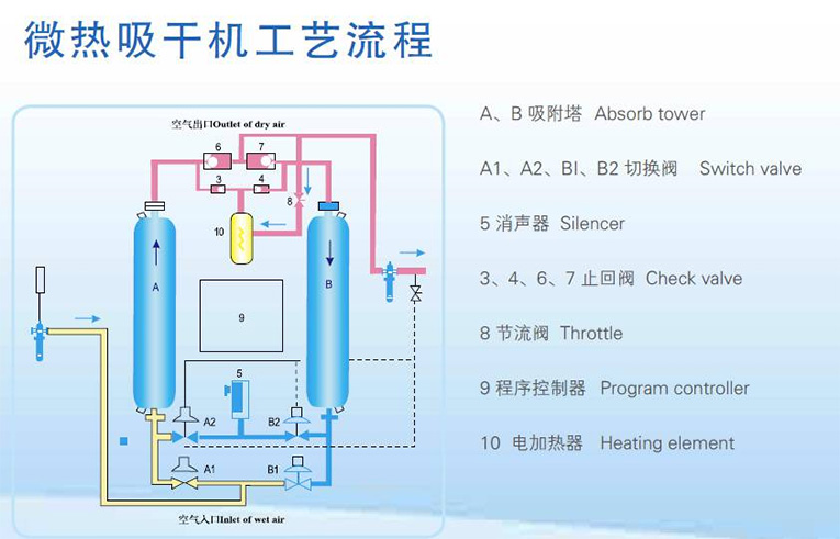B、合理的系统配置,在气流进入机筒前,经高效除油处理即时清除气流中所含油份与重污染物,避免干燥剂层受污染。